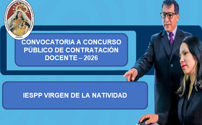 El Instituto de Educación Superior Pedagógico Público “Virgen de la Natividad” de Paruro convoca a profesionales comprometidos a la excelencia académica y formación integral de futuros docentes a participar en el proceso de contratación docentes 2026. Invitamos a especialistas con vocación de servicio, solvencia ética y dominio diciplinar, a sumarse a nuestro proyecto institucional, orientado al fortalecimiento del pensamiento crítico, la investigación formativa y la innovación pedagógica. Esta convocatoria se desarrolla en el marco de la normativa vigente y garantiza transparencia, meritocracia e igualdad de oportunidades. ¡Se parte de una institución que forma educadores con identidad, compromiso y calidad!
